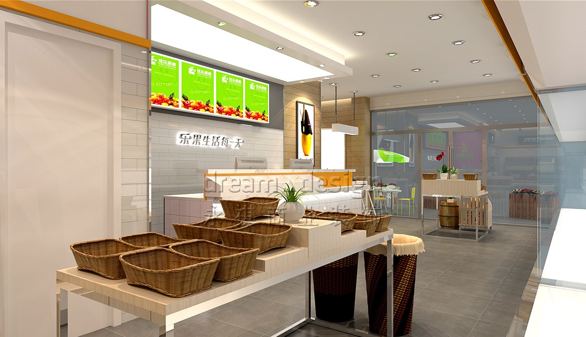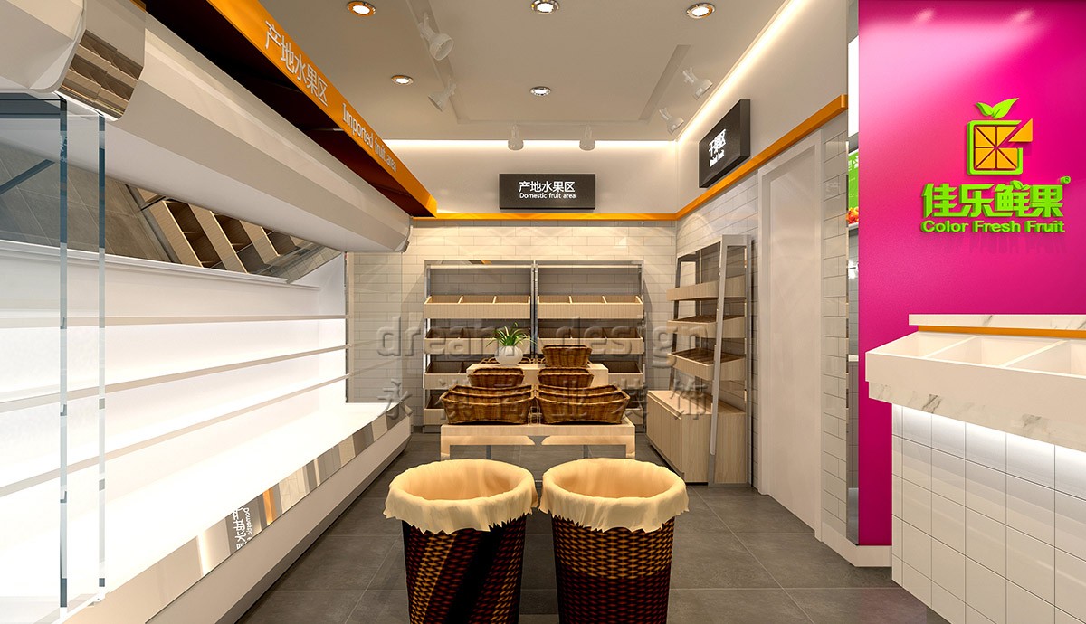 佳樂(lè),來(lái)自一個(gè)男孩和女孩的名字,以及一個(gè)情感故事。男孩送給女孩一個(gè)在情感里的禮物,希望這個(gè)城市里的每一個(gè)人都能吃到有愛(ài)情滋味、鮮美、來(lái)自佳樂(lè)品牌的水果。在通過(guò)跟業(yè)主的溝通后。設(shè)計(jì)師在最低成本情況下,柱子的完美利用以及材料的選取,為空間營(yíng)造出親切、溫暖舒適時(shí)尚的購(gòu)物環(huán)境。