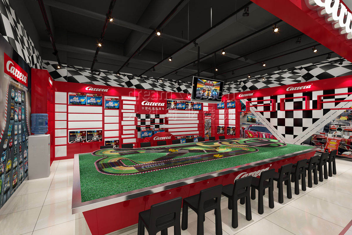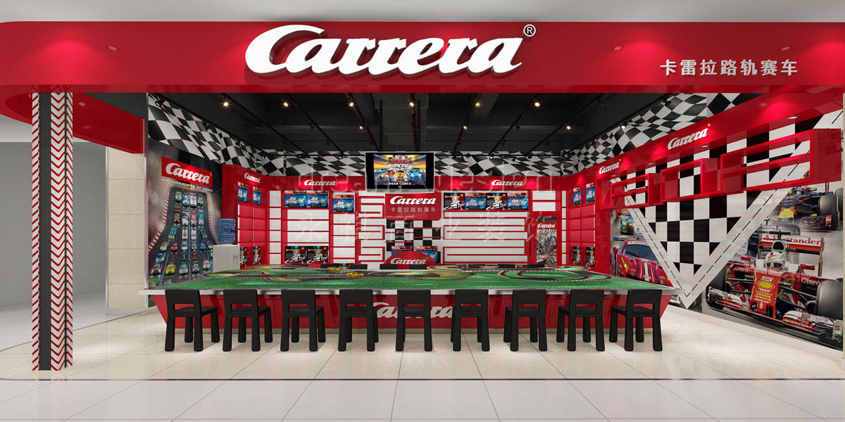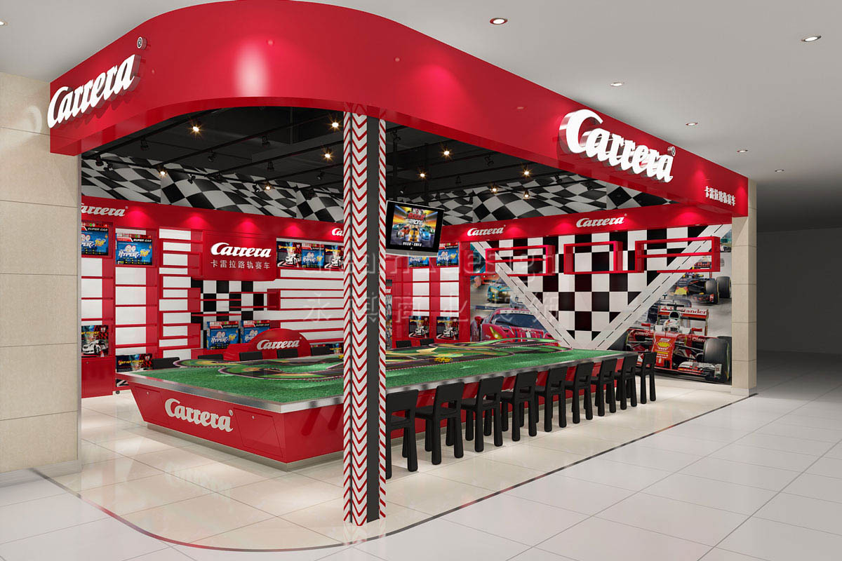 永祺商裝設(shè)計(jì)師以紅色為主色調(diào)突出卡雷拉路軌賽車代表的激情與火熱,在空間設(shè)計(jì)上重視功能和空間組織,造型簡(jiǎn)潔,利用合理的結(jié)構(gòu)工藝,讓有限空間內(nèi)展現(xiàn)出了卡雷拉路軌賽車的無(wú)限激情。