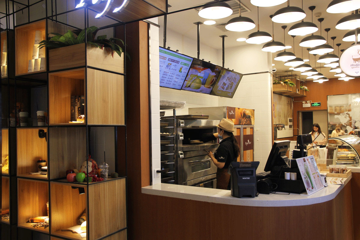 “現(xiàn)烤現(xiàn)買”是帕帕羅蒂的特色之一,當(dāng)麥香傳出,人們?nèi)滩蛔●v足,明亮的燈光更能讓消費者看清烘焙師的一舉一動,開放式設(shè)計與店型十分匹配,原木色調(diào)簡約而純粹。