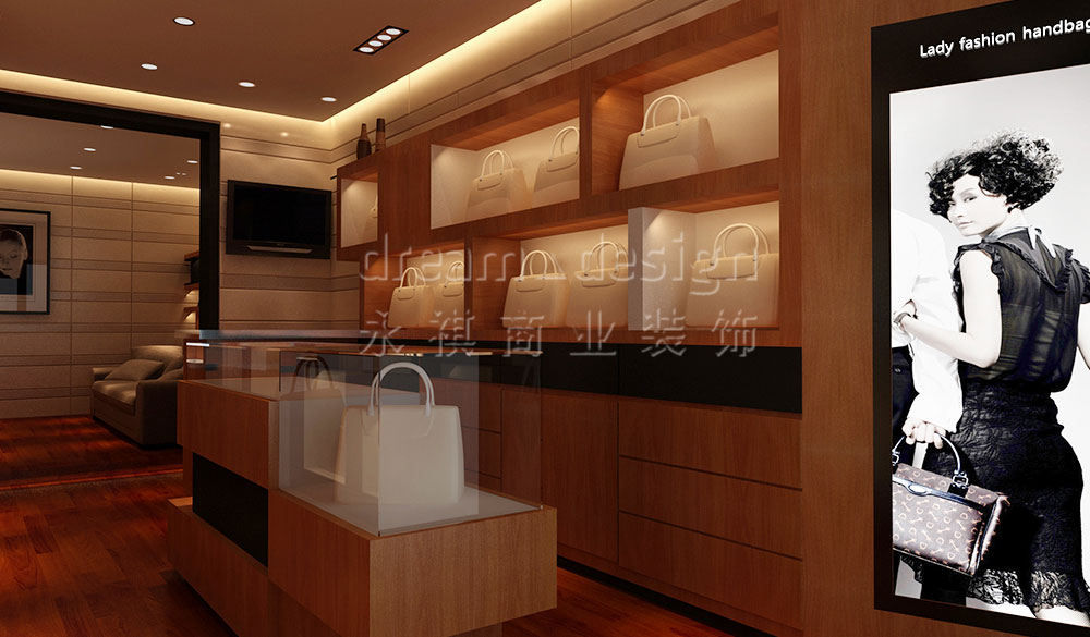 時尚包包是都市女人的最愛,唯美的店面設(shè)計就像品嘗經(jīng)典美食前的餐前酒,讓人欲罷不能卻又對“主角”飽含期待。