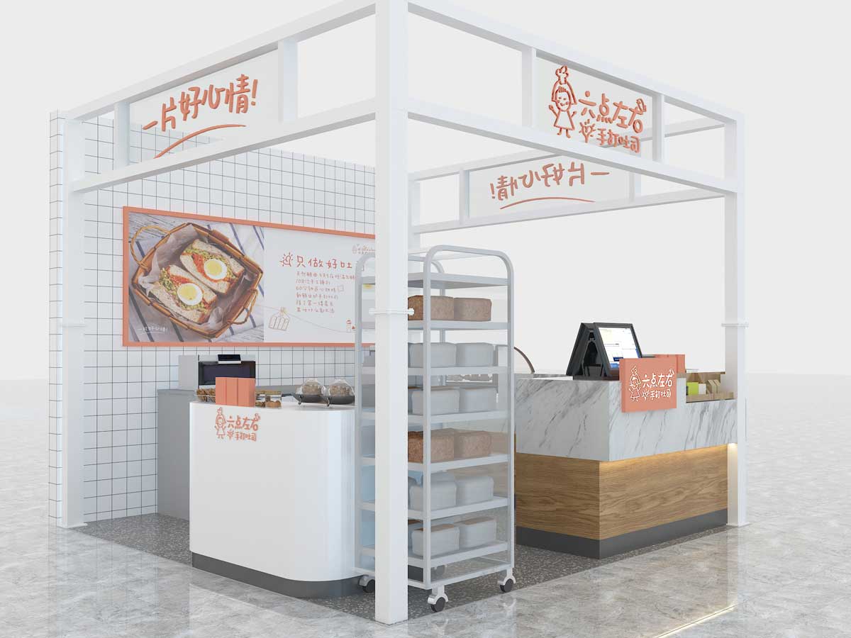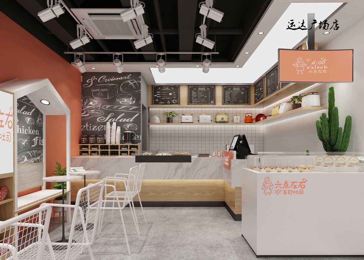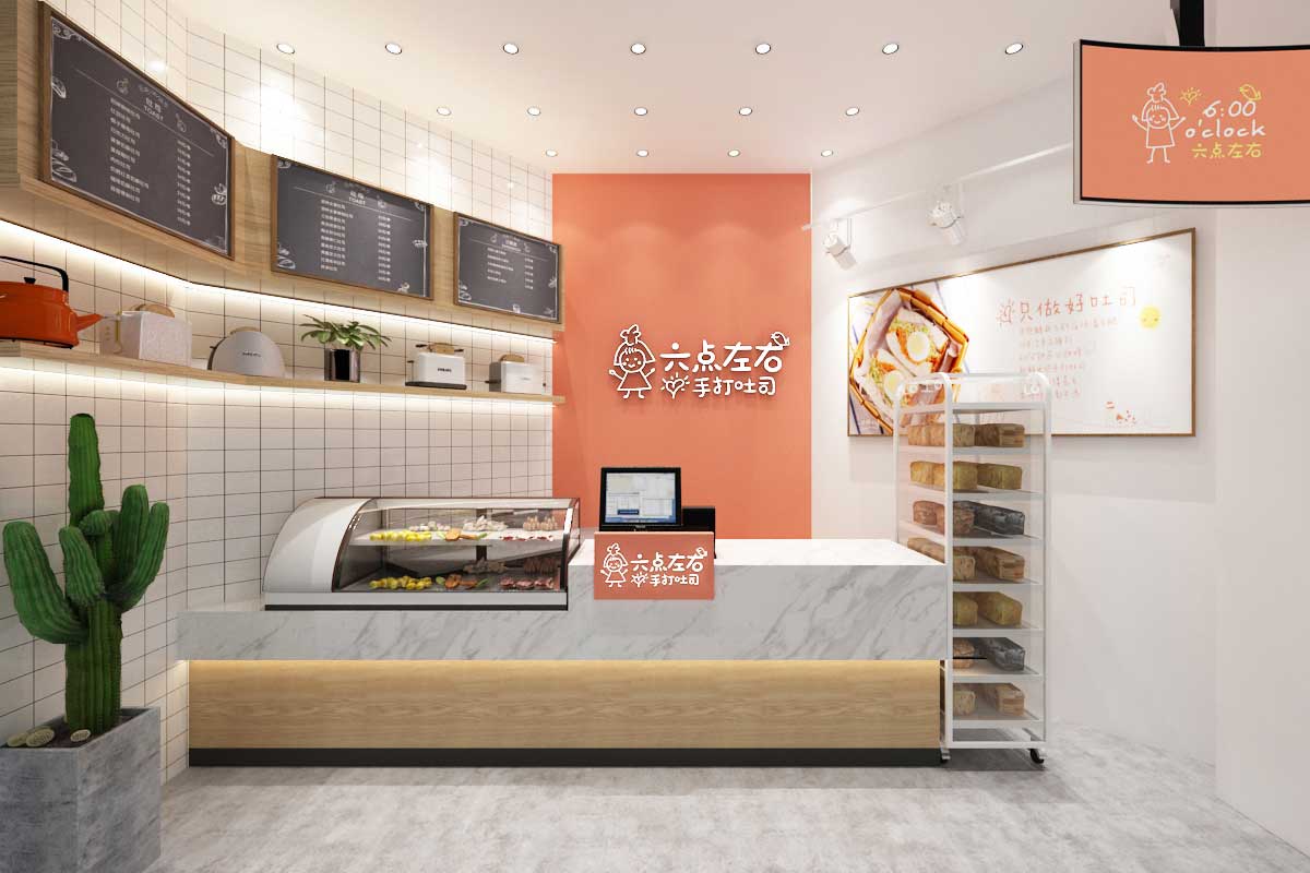 六點(diǎn)左右吐司配備透明玻璃窗和全透明制作間,可以讓消費(fèi)者近距離觀看制作流程,使消費(fèi)者更加放心吐司的質(zhì)量,安心享受六點(diǎn)左右吐司所帶來(lái)的健康食品。永祺商裝已與“六點(diǎn)左右”合作:德思勤店、華創(chuàng)店、凱德壹中心、運(yùn)達(dá)店等,為這幾家店面量身定制效果圖與施工圖,只求將連鎖品牌個(gè)性充分發(fā)揮。