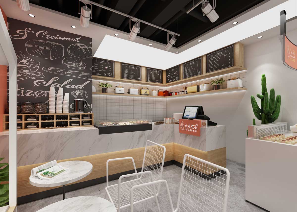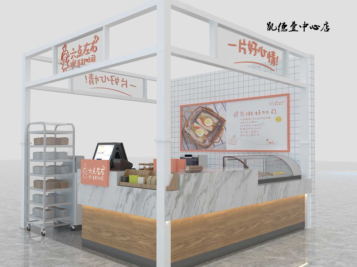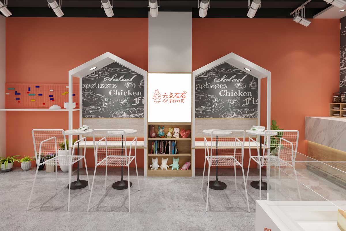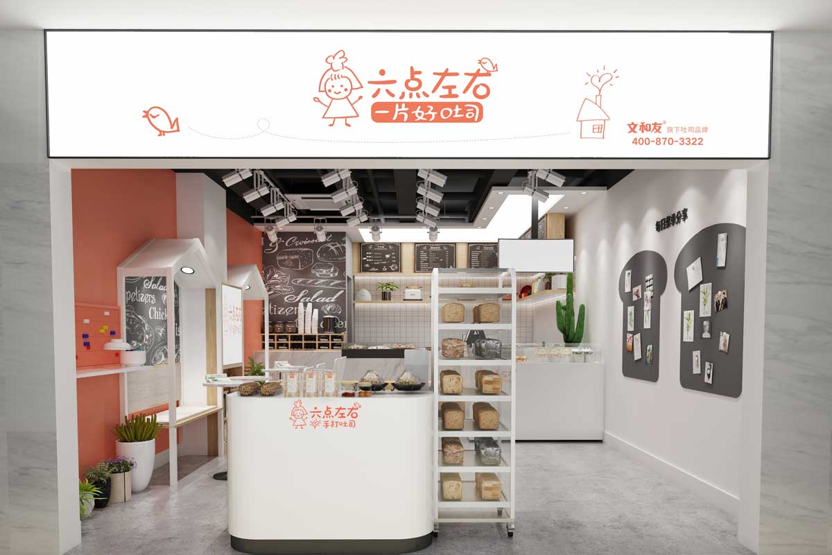六點(diǎn)左右吐司配備透明玻璃窗和全透明制作間,可以讓消費(fèi)者近距離觀看制作流程,使消費(fèi)者更加放心吐司的質(zhì)量,安心享受六點(diǎn)左右吐司所帶來(lái)的健康食品。永祺商裝已與“六點(diǎn)左右”合作:德思勤店、華創(chuàng)店、凱德壹中心、運(yùn)達(dá)店等,為這幾家店面量身定制效果圖與施工圖,只求將連鎖品牌個(gè)性充分發(fā)揮。