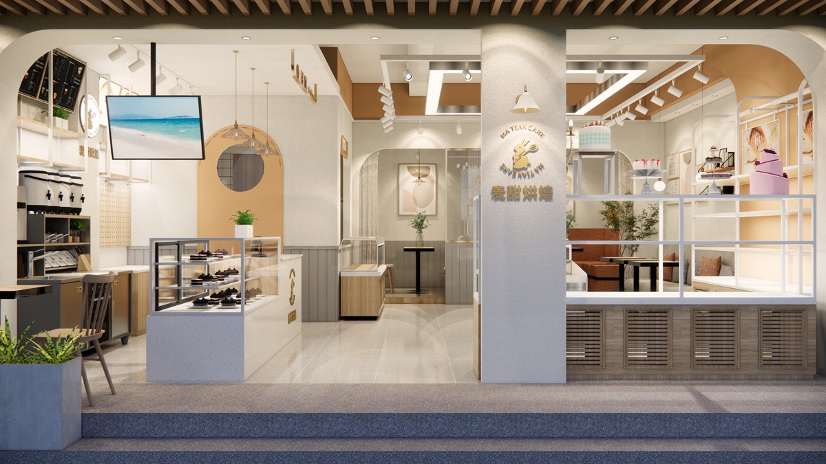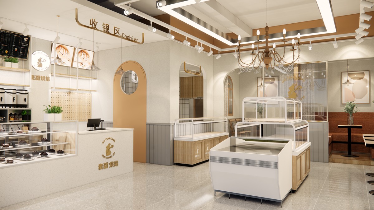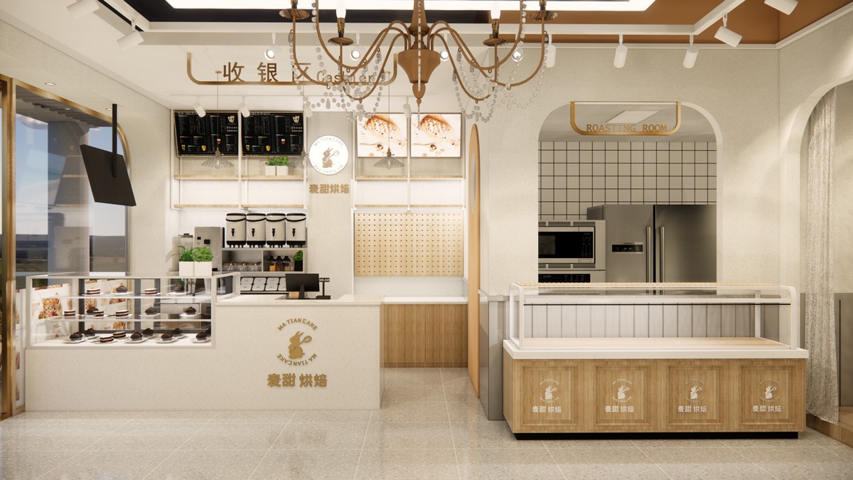 烘焙面包、甜點店面定位為比較溫馨的環(huán)境,造型和色調(diào)上都偏“甜”,扣名“麥甜烘焙”