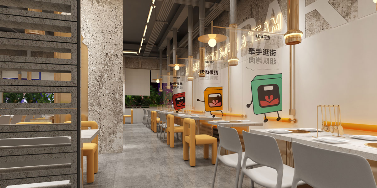 在快速發(fā)展的餐飲市場(chǎng),烤肉以其動(dòng)手烤制的方式獲得大多數(shù)年輕人喜歡。組隊(duì)烤肉找到永祺希望在長(zhǎng)沙建立一個(gè)新的烤肉品牌。永祺為其提供了專業(yè)的品牌策劃服務(wù)及空間規(guī)范服務(wù)。