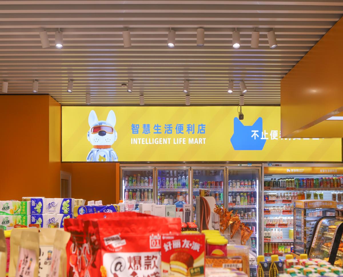 針對(duì)年輕生活方式,全新打造的全國連鎖便利店品牌,色調(diào)、燈光統(tǒng)一比較亮眼,還有象征智慧的卡通IP。智慧生活,想購就go,實(shí)現(xiàn)互聯(lián)網(wǎng)購物+