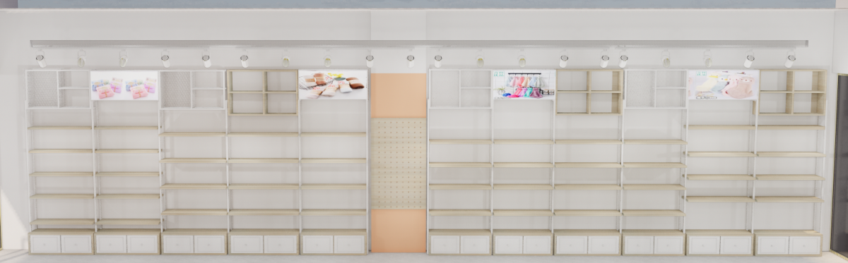 主營針織產(chǎn)品,數(shù)量種類多,陳列要求比較高,顏色統(tǒng)一是橙黃色調(diào),整體比較亮眼和協(xié)調(diào)。如何最大程度滿足陳貨量,區(qū)域劃分清晰明確,成為了我們這次設(shè)計的重點。 店鋪分為兩層,一層毛巾區(qū)域:采用白色搭配原木色的貨架,簡約干凈,分類明確空間燈光明亮,突出產(chǎn)品,激發(fā)購物欲望。二樓針織展廳:多種類別服裝道具使陳列展示效果最大化,顏色搭配使區(qū)域分類明確,突出品牌的理念和質(zhì)感。