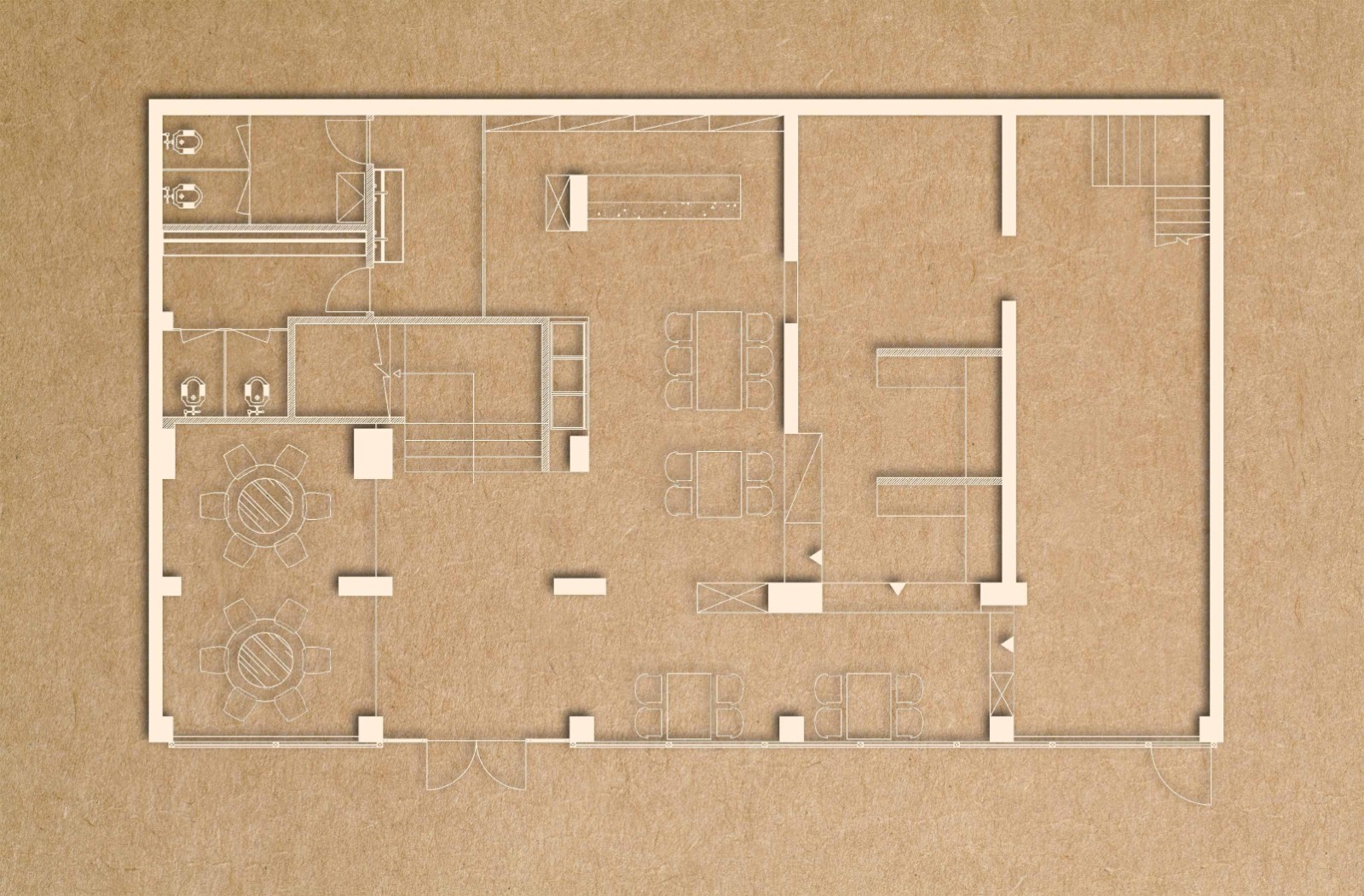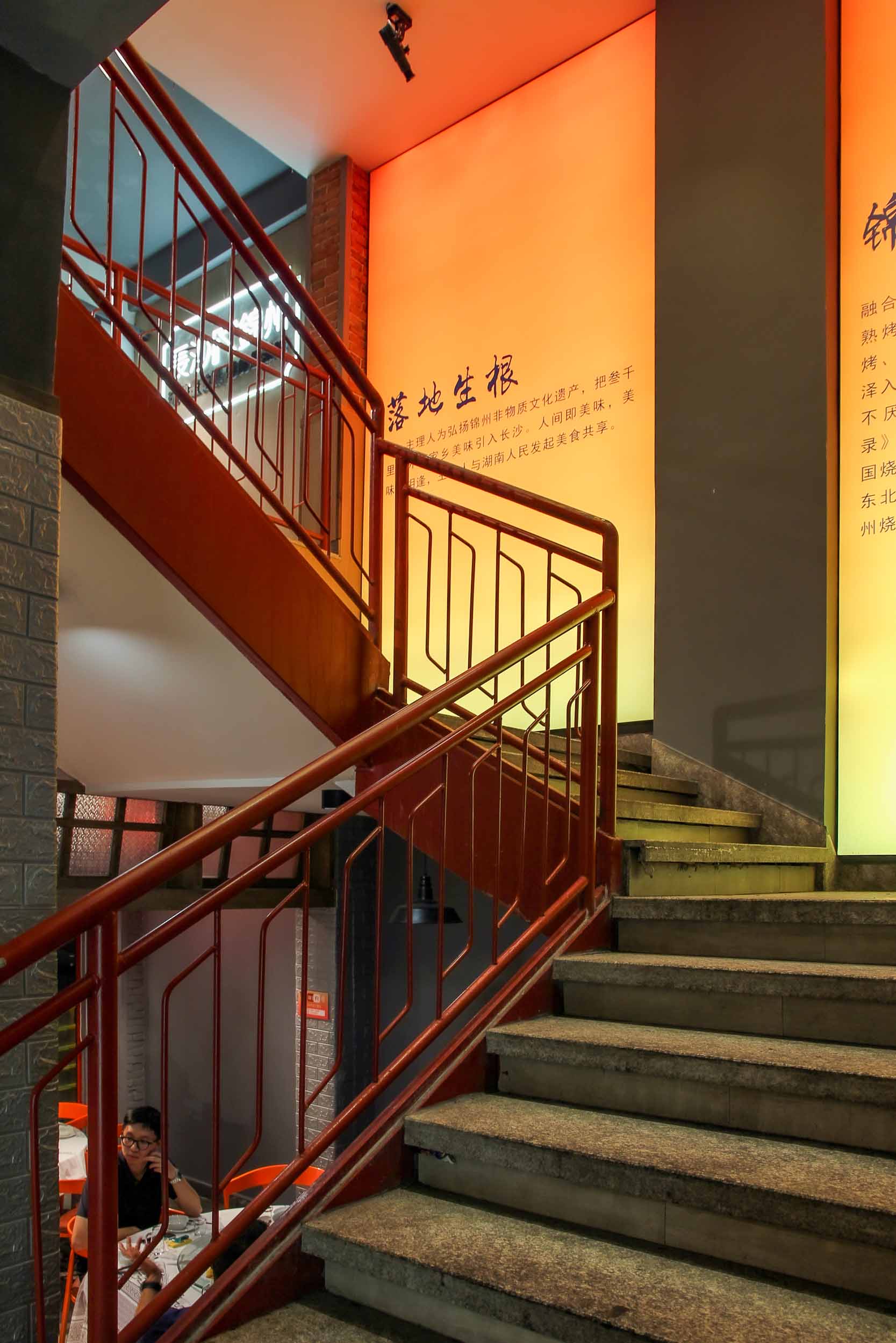 店內(nèi)裝潢融合了現(xiàn)代與傳統(tǒng),踏入二毛燒烤,自然與活力的氣息撲面而來。店內(nèi),橙色調(diào)的椅子如同溫暖的落日余暉,為整個(gè)空間增添了一抹亮麗的色彩。未經(jīng)雕琢的磚石,透露出一股粗獷而質(zhì)樸的美感。白色桌布,簡約而不失優(yōu)雅。復(fù)古的紅色欄桿,水泥橫梁與木材、綠植裝飾的吧臺,不僅彰顯了設(shè)計(jì)者的巧思,更讓人仿佛置身于大自然的懷抱中。